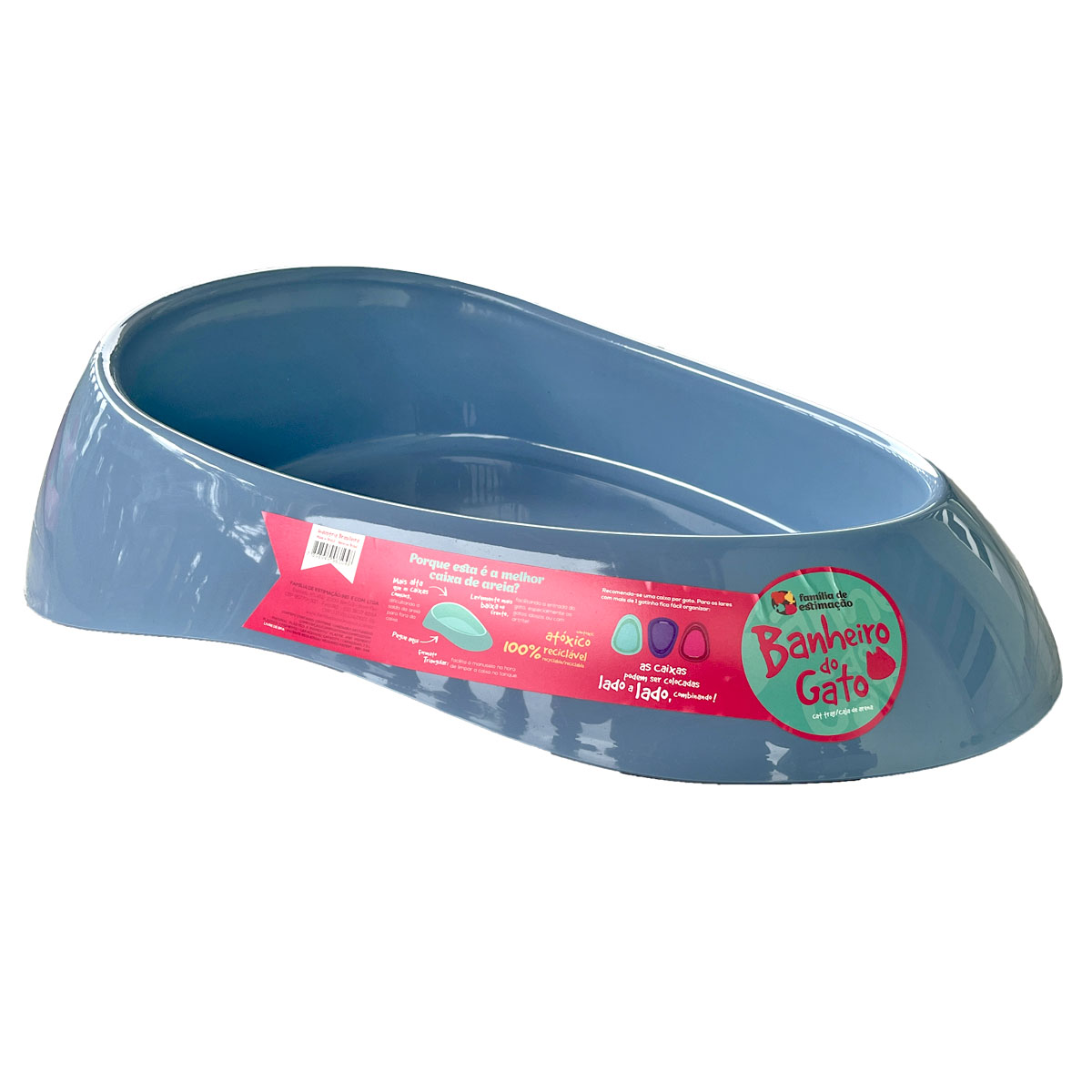 Laterais mais altas para dificultar a saída da areia para fora da caixa e aberta para visualizar a saúde do gato e lembrar que os dejetos devem ser retirados depois do uso.